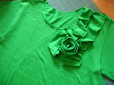 i managed to whip this up, 3 hours before the 8:00 am party. my plan was to let her wear one of her floral dresses + wings. but... creativity and sewing mojo came in early in the morning and so this came about...